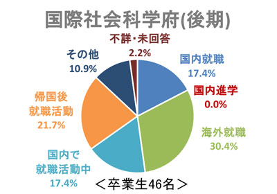 | 進学先 Geneva Business School(1) 横浜国立大学大学院先進実践学環(1)、都市イノベーション学府(1)、環境情報学府(2)、大学院(2) 東京大学大学院(3) 東京工業大学(1) |