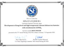 大学院理工学府生が76th Annual Meeting of the International Society of Electrochemistrで「Best Poster Award 」を受賞