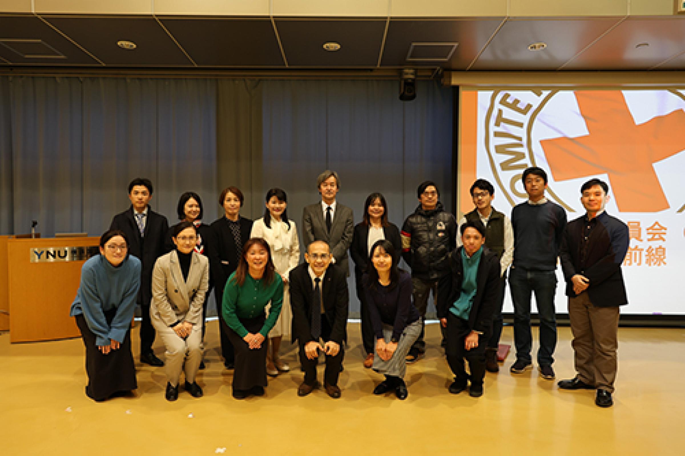 講演会は、「人道支援の最前線~横浜国立大学卒業生に聞く~」と題し、ICRCの発足の経緯と中立の立場からの人道支援活動の概要や日本における赤十字団体の歴史、川﨑氏ご自身が人道支援活動の中で大事にしている、どのようにしてICRCの支援を届けていくかという考えとジェンダーの視点についてお話をいただきました。紛争地域等でどのような支援が必要か、また、日本人が国際的な現場でどのような役割を果たすことができるかを具体的なイメージとして考えることのできる貴重な機会となりました。
