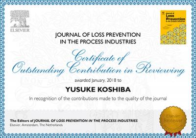 工学研究院 小柴佑介 技術専門職員は、Elsevier B.V. から、プロセス安全を取扱う学術誌である Journal of Loss Prevention in the Process Industries における Outstanding Reviewer を受賞しました。本賞は、同誌における過去 2 年間の査読数が世界の全査読者の上位 10% に位置する研究者に送られるもので、この貢献が評価されました。