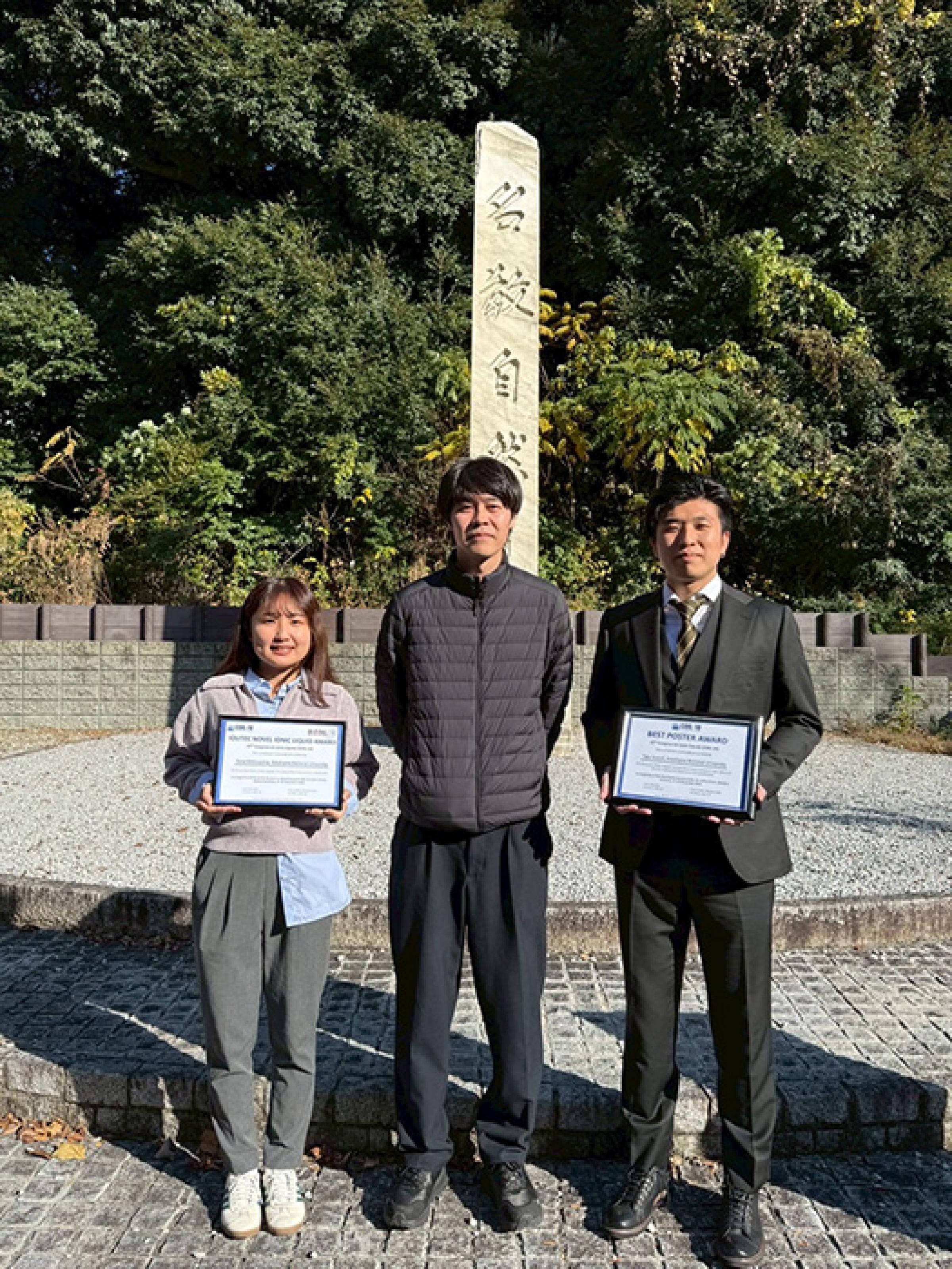 大学院理工学府 化学・生命系理工学専攻 エネルギー化学教育分野 博士課程後期 3年の須藤拓さん(指導教員:上野和英 教授)が、2025年 11月 17日~ 21日にオーストラリア(パース)にて開催された The 10th International Congress on Ionic Liquids (COIL-10)において、「 Polymer-assisted Deep Supercooling of Li Salt: Effects of Polymer Additives on Suppression of Crystallization」というタイトルでポスター発表を行い、ポスター賞を受賞しました。