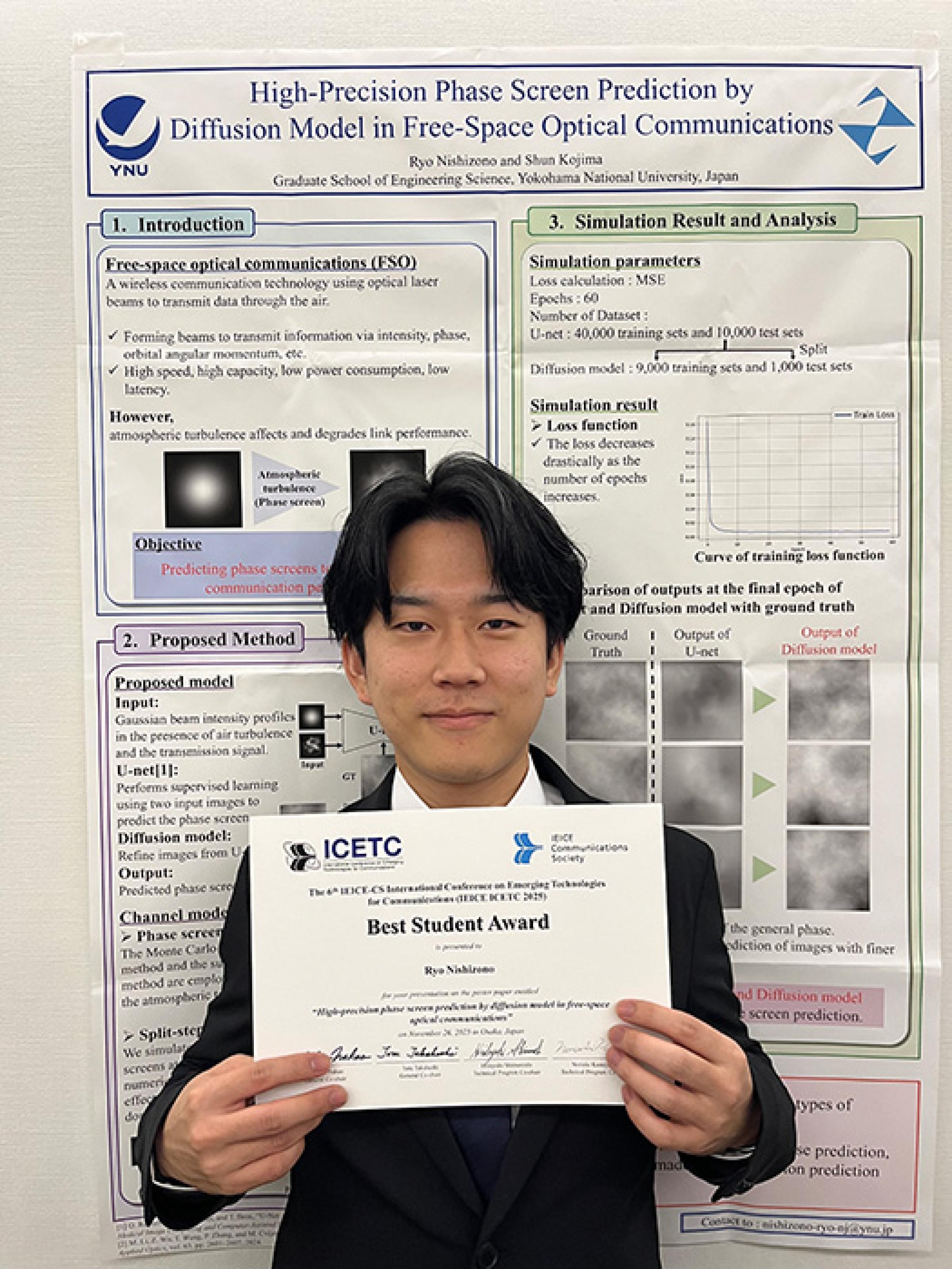 受賞論文の題目は High-precision Phase Screen Prediction by Diffusion Model in Free-space Optical Communications です。