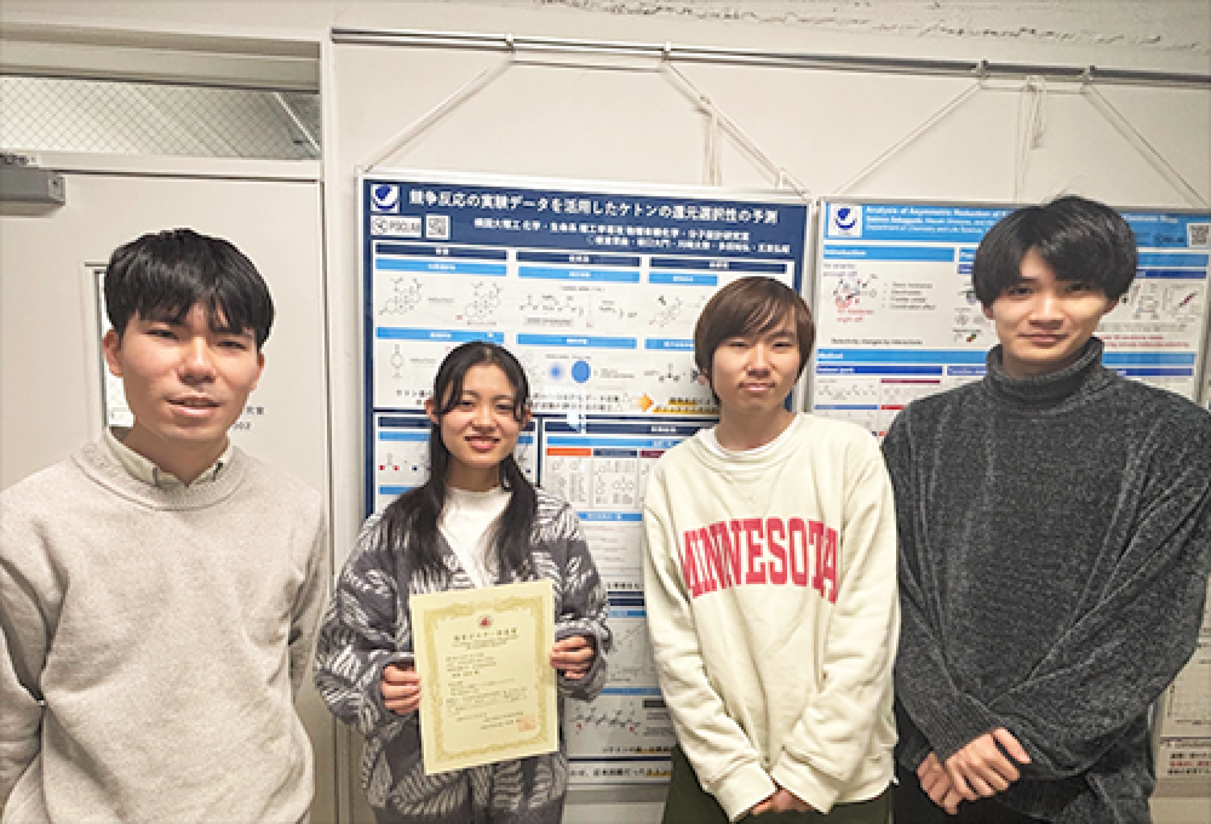 本学会には学部生から大学院生まで幅広い学生が参加し、多数のポスター発表が行われました。その中から優れた発表として選出されたものです。今回の受賞は、板倉さんの研究内容の質の高さと、優れたプレゼンテーション能力が高く評価された結果です。