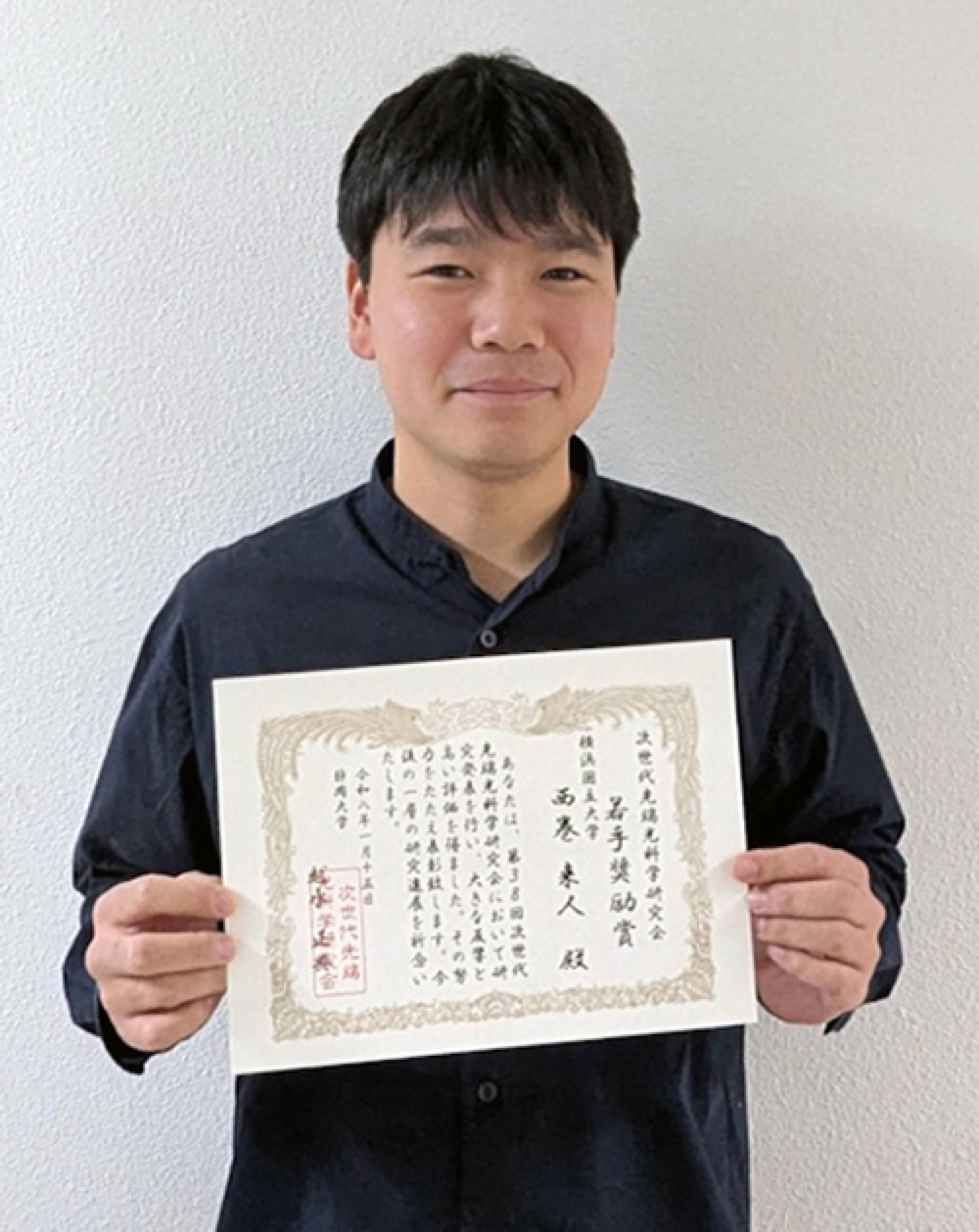 2026年 1月 15日(木)、別府市ふれあい広場サザンクロスで開催された「第38回次世代先端光科学研究会 (兼 量子エネルギー変換研究会第5回研究会)」において、理工学部 化学・生命系学科 化学EP 4年の西巻来人さん (指導教員: 伊藤暁彦 教授) が、「若手奨励賞」を受賞しました。