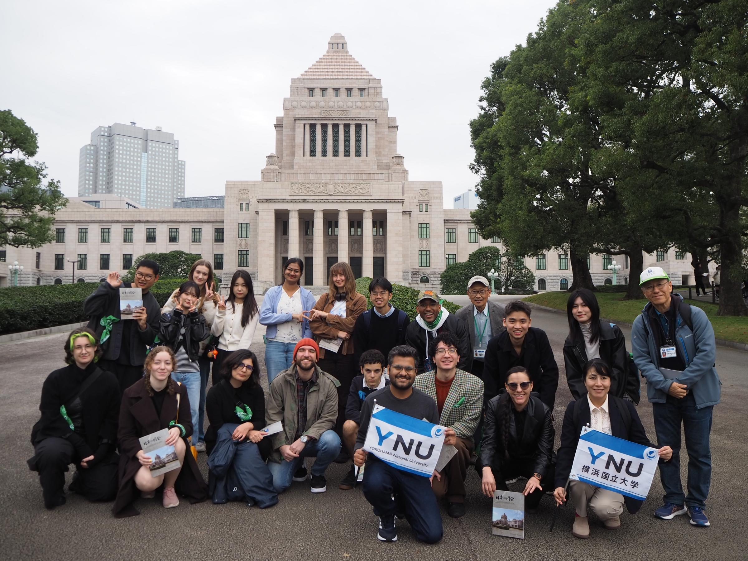 On Friday, October 31, 2025, Yokohama National University held a One-Day Tokyo Bus Tour as part of the Cross-Cultural Experience Program, supported by the Alumni Association. International students explored the highlights of Tokyo in a single day, including a visit to the House of Councillors in the National Diet Building, a free lunch at Tokyo Solamachi, and a hands-on Japanese cultural experience at AN TOKYO, where they made traditional sweets (wagashi) and prepared matcha tea.
