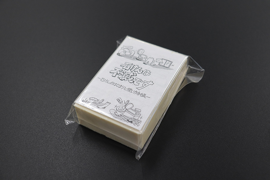 この手作り石鹸は障害者の就労・自立支援作業所「浦島共同作業所」で作ったお弁当の廃油を原料としています。汚れ落ちピカイチの手作り石鹸は食器洗いやエリの汚れ落としに最適です。