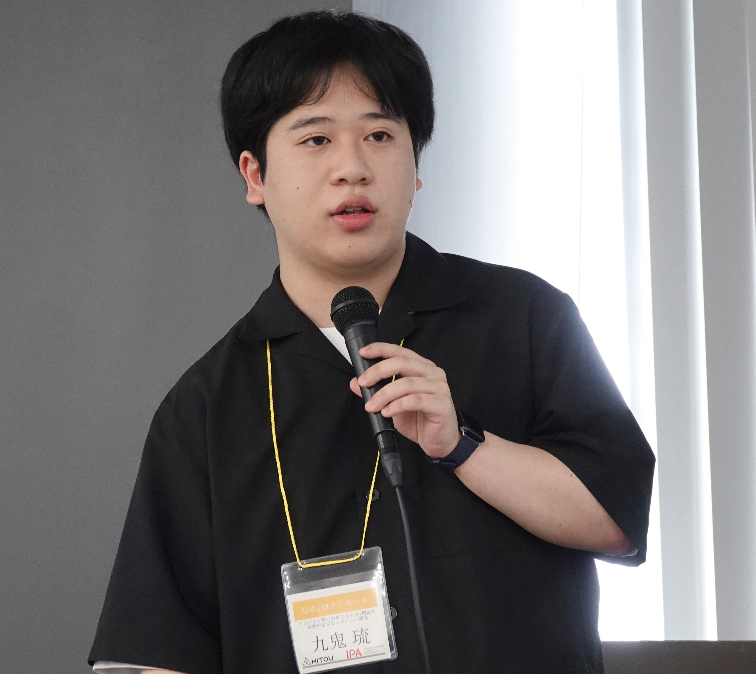 九鬼:田中PMから「成果をどう見せるかが重要だ」と繰り返し指導を受けました。成果発表では、IoT機器に侵入するデモンストレーションを行うなど、分かりやすく伝える工夫をしました。良いものを作るだけでなく、社会にどう伝え、どう実装していくかが大切だという視点を学びました。